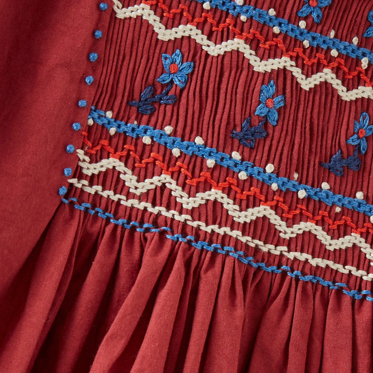 MARS BABY GIRL'S COTTON HAND-SMOCKED DRESS - TEA
